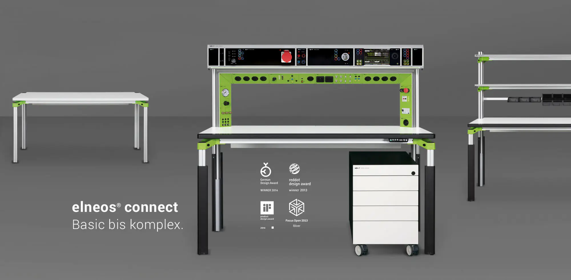 The elneos connect workstation system stands out with its thoughtful architecture, combining functionality and aesthetic design. With a flexible aluminum profile system, it offers room for individual customization.